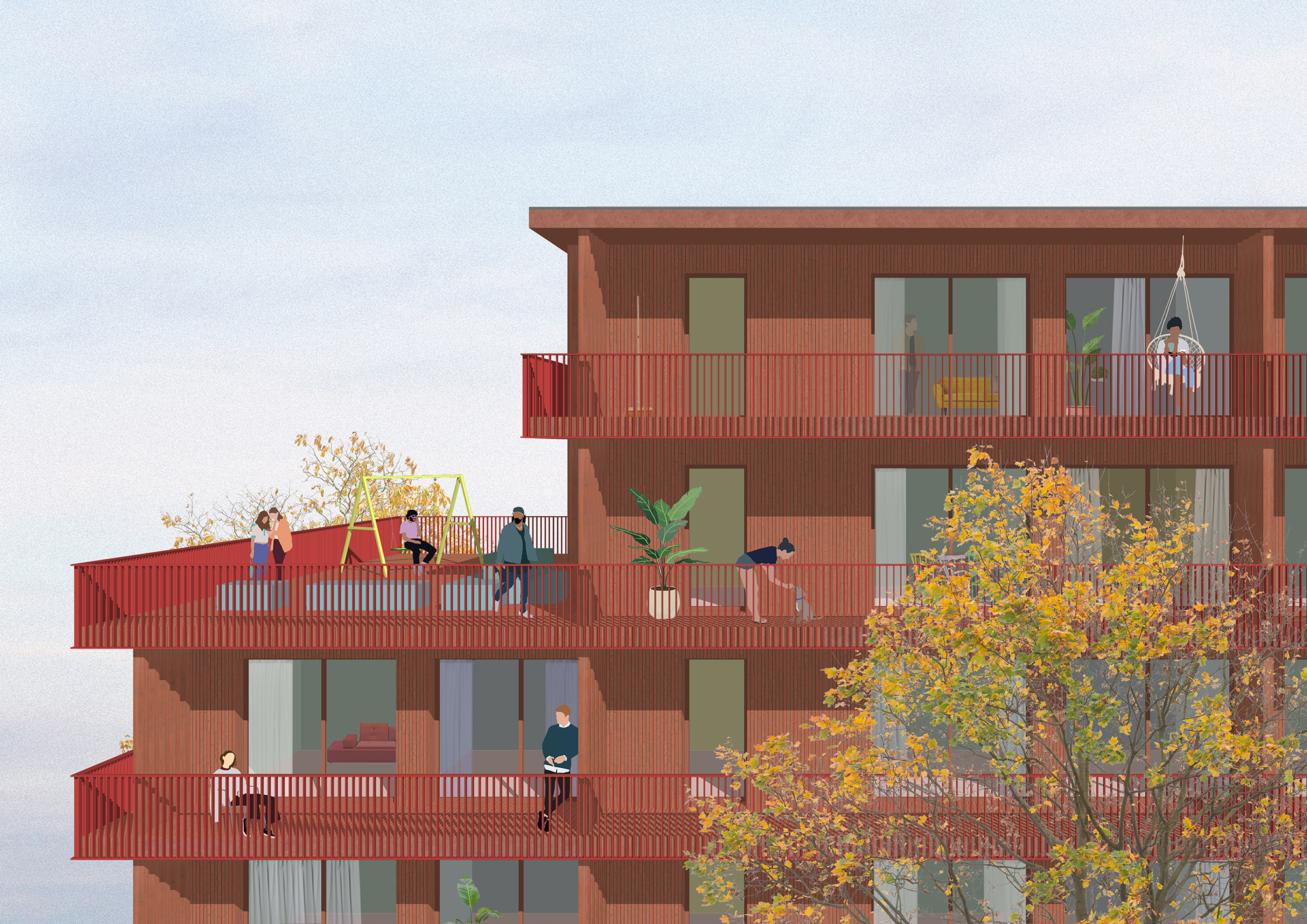 In opdracht van Stichting Joost ontwerpen we de toekomstige woonomgeving op de Herman Moerkerklaan in Rosmalen. De 153 appartementen krijgen een duurzame basis met een houten constructie, gecombineerd met systeembouw en natuurinclusieve oplossingen. Het entreegebied, een doorgang tussen de gebouwen en een nieuwe dijkopgang maken de openbare ruimte tot een toegankelijke en uitnodigende ontmoetingsplek. Het woonplezier voor de bewoners en buurt staat voorop!