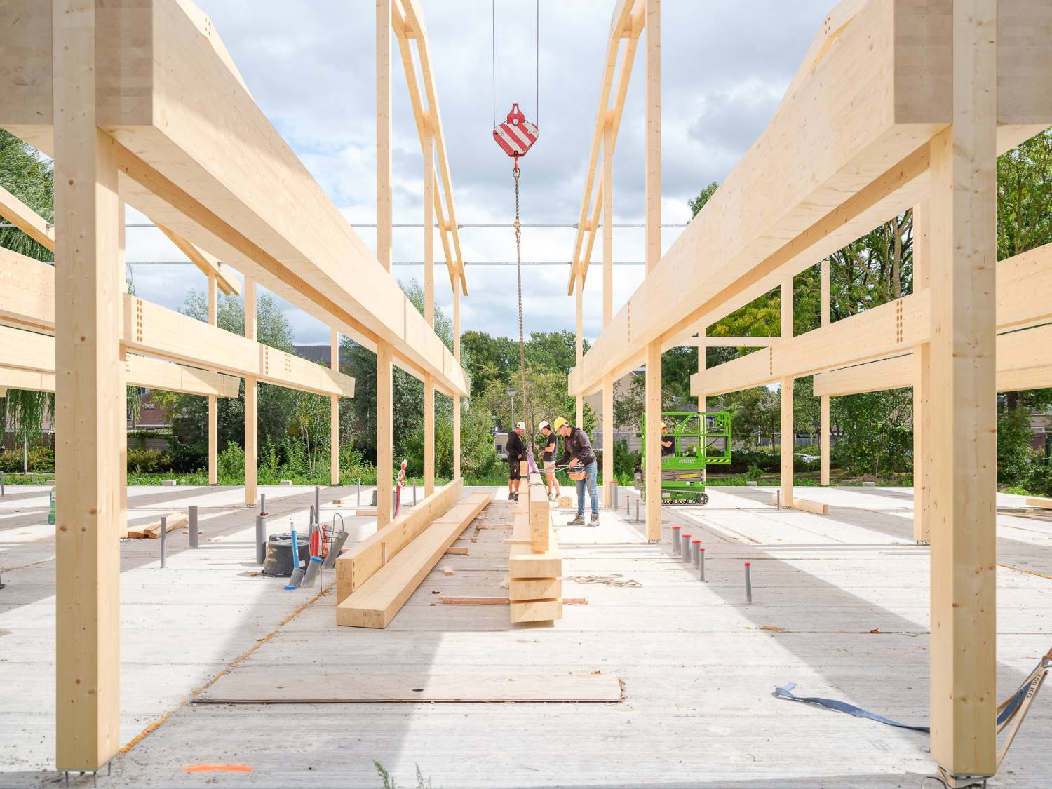 We bouwen met hout. Hout is duurzaam, maakt snelle en efficiënte bouw mogelijk en draagt tegelijk bij aan een gezond binnenklimaat. Zo ontstaat een duurzame, toekomstbestendige omgeving waar het prettig werken, leren en spelen is.
