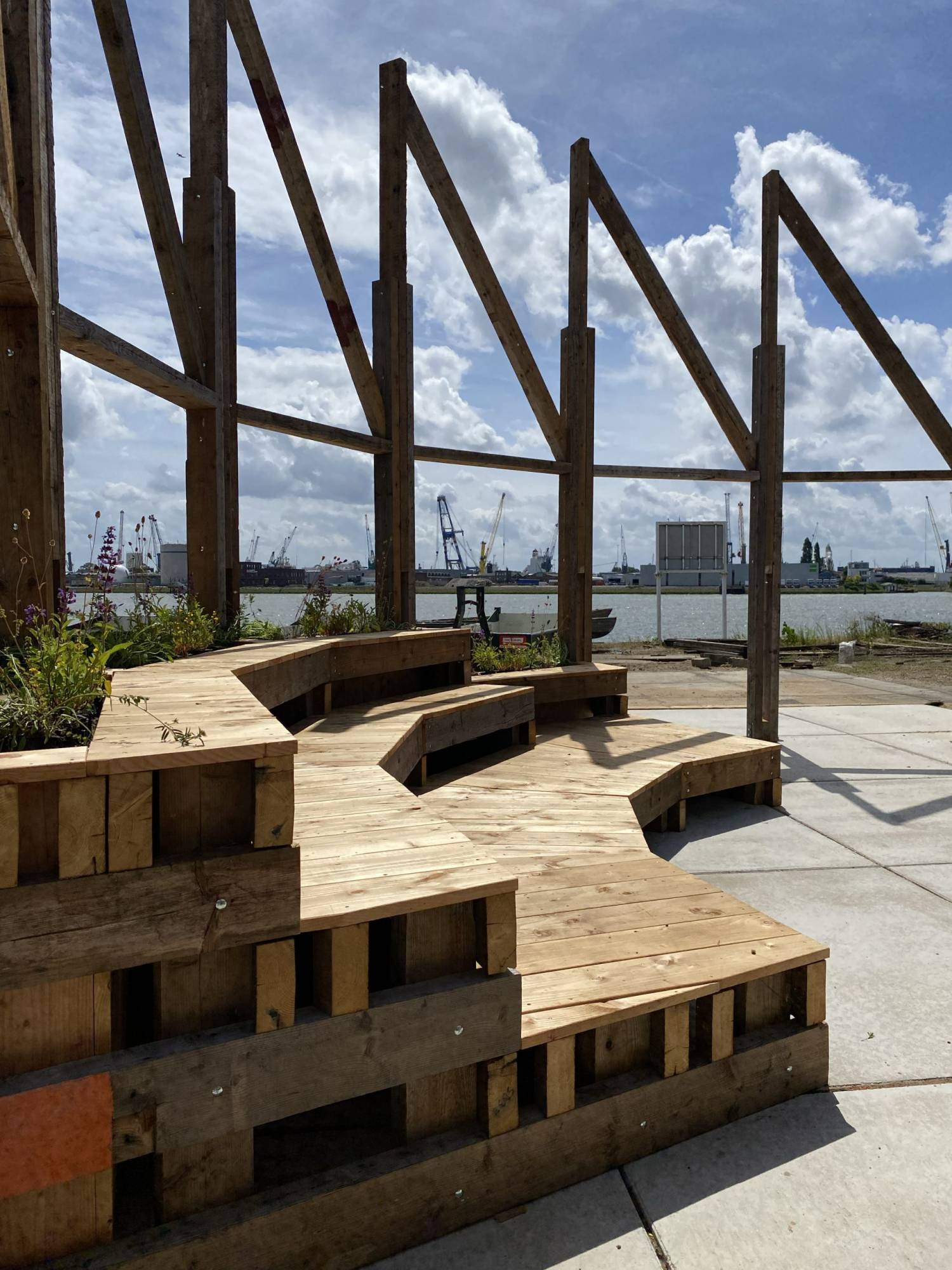 Het Kade Podium: volledig opgebouwd met hergebruikte materialen: oude vloerbalken krijgen een tweede leven