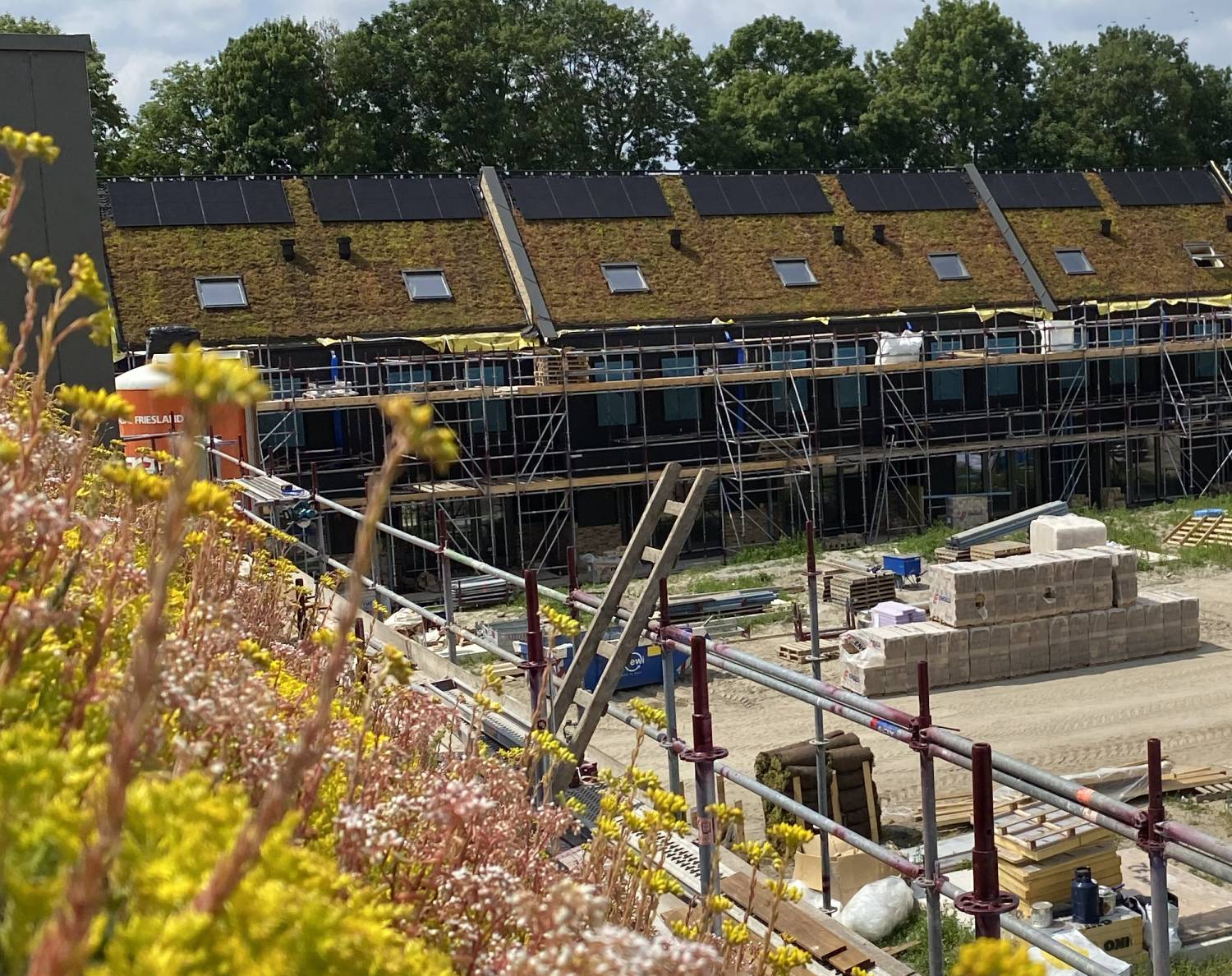 Het dak is het grootste oppervlak dat we aan groen kunnen toevoegen. Alle grondgebonden woningen krijgen groendaken, effectief tegen hittestress, voor waterretentie, voor het koel houden van de woning en bijdragend aan de biodiversiteit.